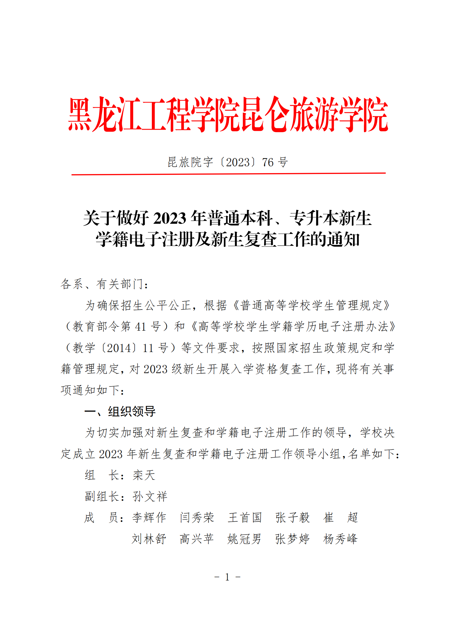 关于做好 2023 年普通本科、专升本新生 学籍电子注册及新生复查工作的通知