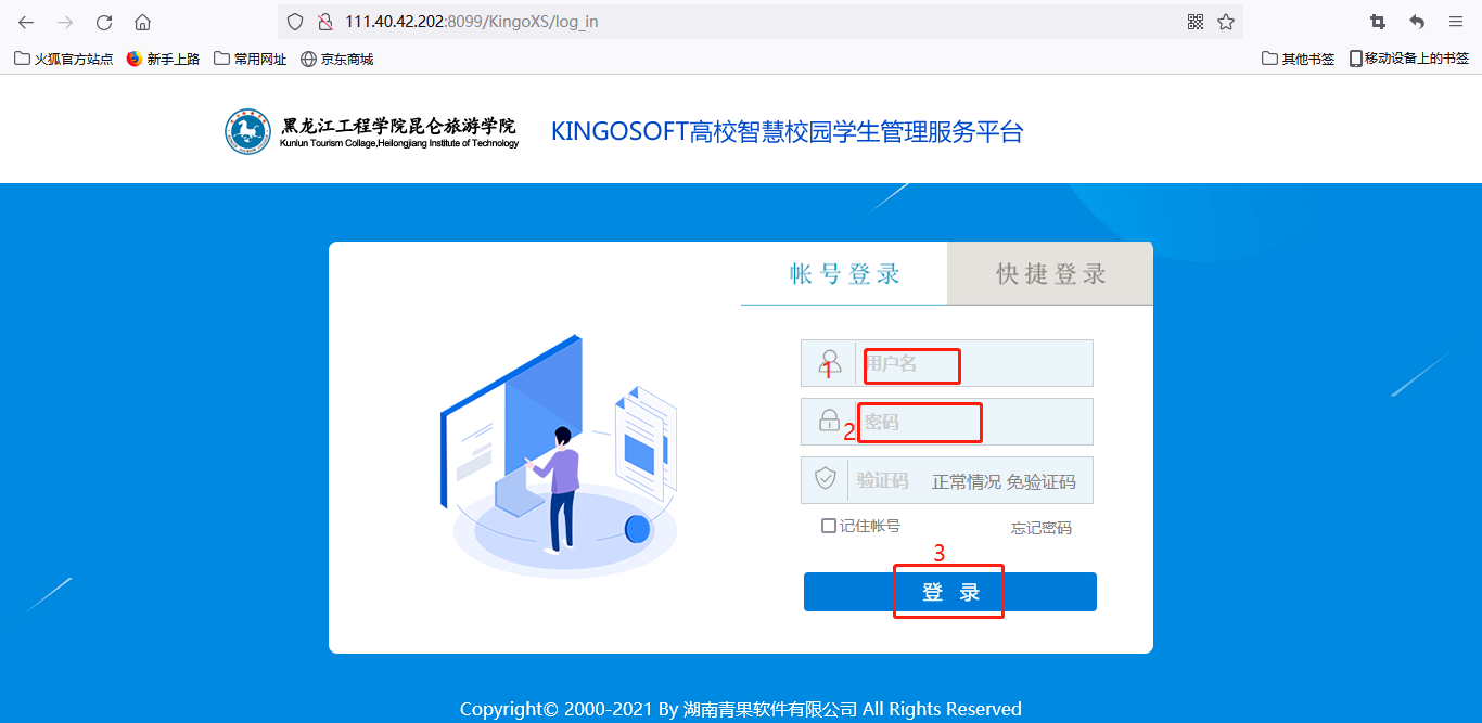 登录地址:http://111.40.42.202:8099/KingoXS,建议使用火狐浏览器。备注:使用电脑登录系统。