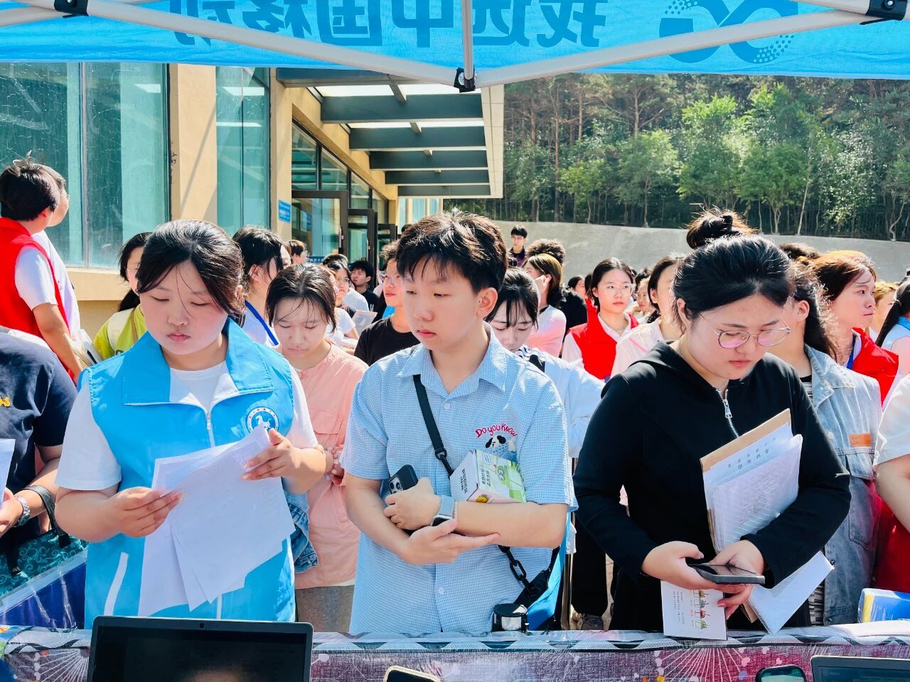 报到现场同样高效有序。7个系部分别设立服务台,1900余人次志愿者校内外全程引导,工作人员耐心协助新生完成注册、缴费、物资领取等手续;学校还创新采用“线上线下融合”报到模式,借助信息化手段简化流程,真正实现“数据多跑路,新生少跑腿”,大幅提升报到效率。