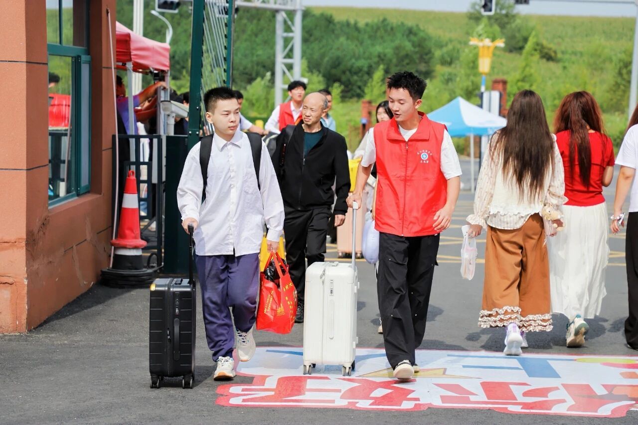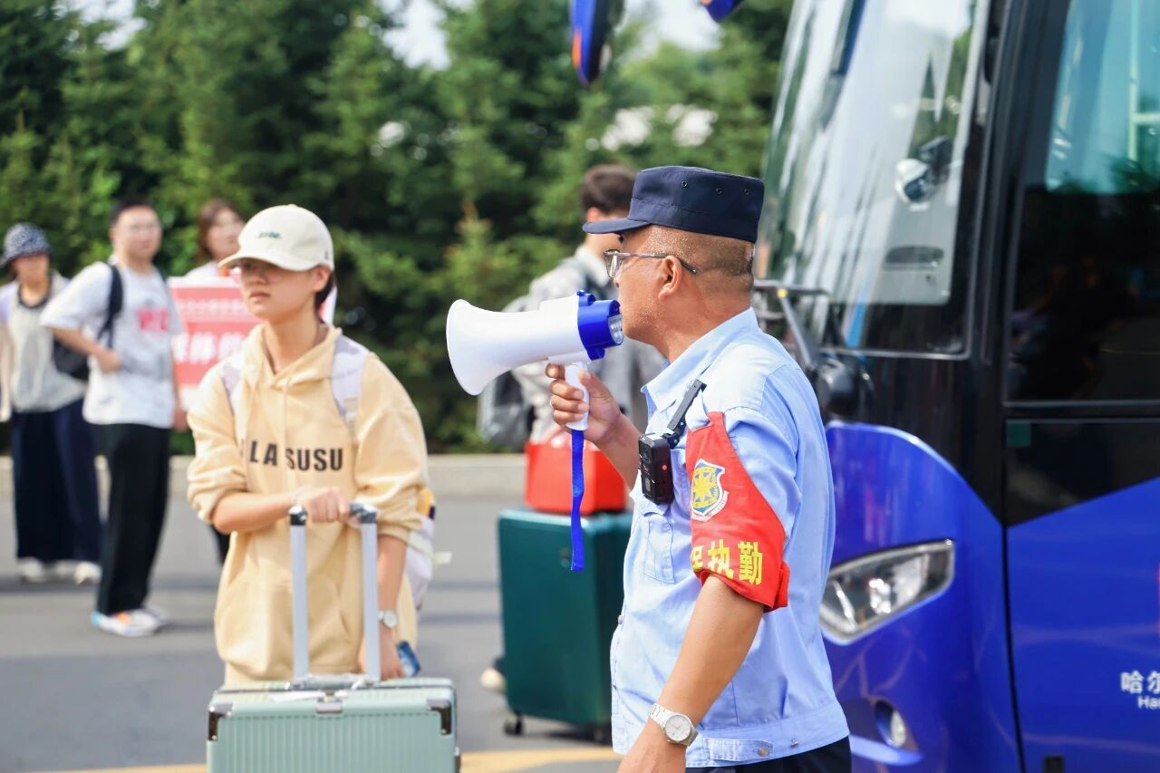 为打通新生入学“最后一公里”,学校在哈尔滨太平国际机场、哈尔滨站、哈尔滨西站、宾州站四大交通枢纽设立专属接站服务点。迎新期间累计发出接待车辆108车次,志愿者们手持醒目标识早早守候在出站口,主动帮新生搬运行李、引导乘车,途中还热情讲解哈尔滨的历史文化与学校的办学概况,让新生未入校园先感温暖。