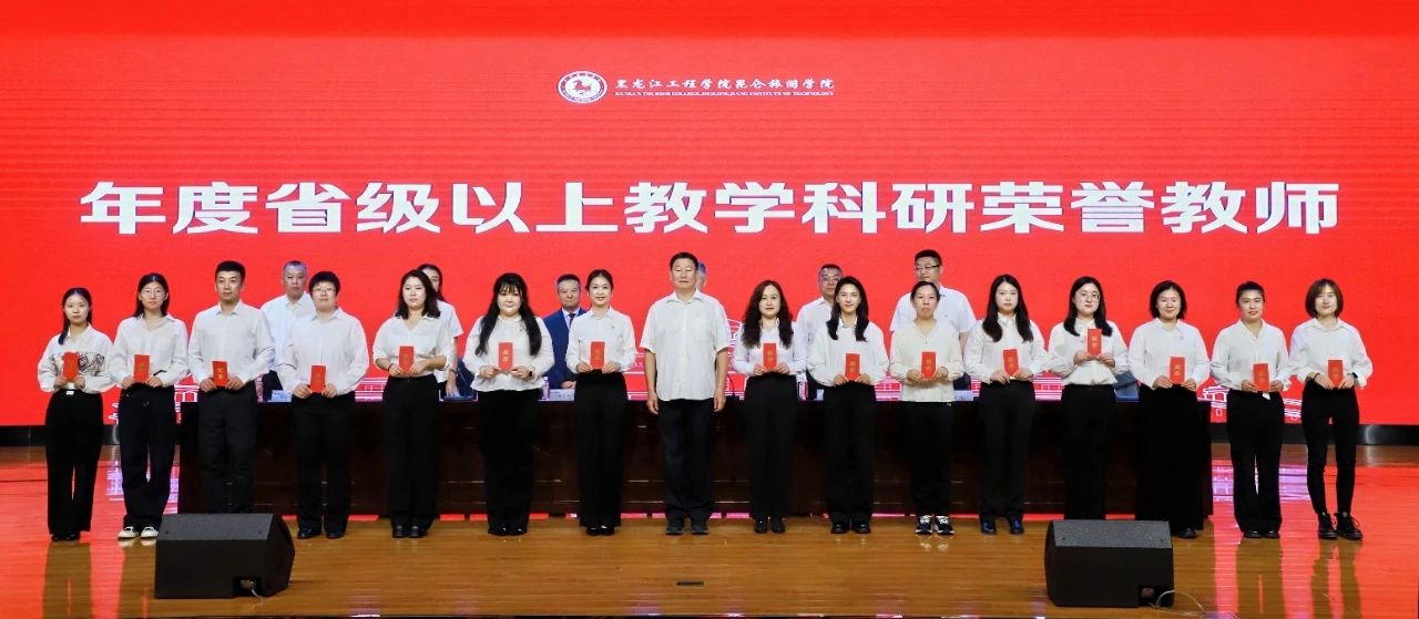 在热烈的掌声中,隆重的颁奖典礼将大会推向高潮。6个“先进集体”、18名“优秀教师”、8名“先进工作者”、3名“优秀辅导员”、17名获得省级以上大学生创新创业荣誉的指导教师代表、14名获得年度省级以上教学科研荣誉的教师代表、1名课程思政优秀教学案例获得者和14名优秀毕业论文指导教师依次上台领奖。学校领导分别为获得表彰的集体和个人颁奖。