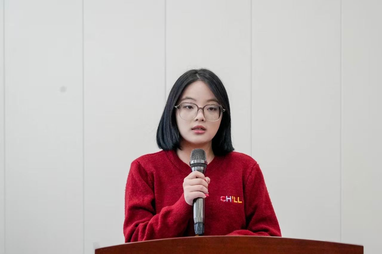 授牌仪式后,我校青年论坛学生代表谢燕妮同学上台发言。
