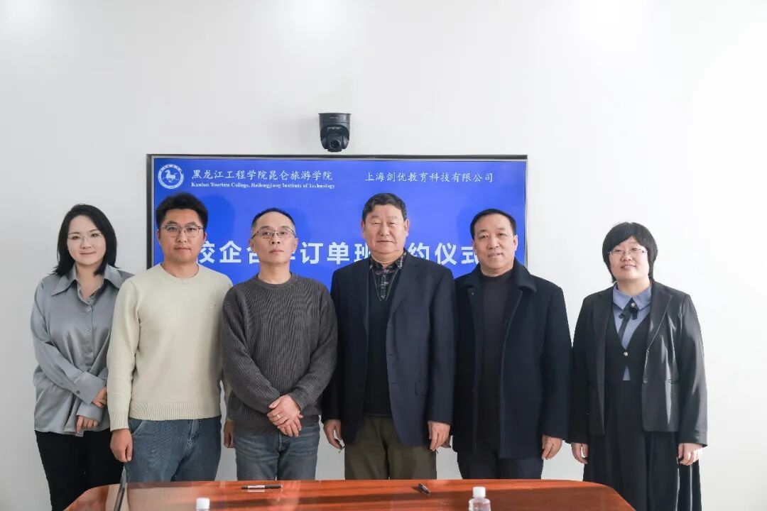 12 月11 日,我校与上海剑优教育科技有限公司、北京京师智雅教育科技有限公司校企合作订单班签约仪式在群观楼716室举行。上海剑优教育科技有限公司总经理薛剑波、孙金龙代表,北京京师智雅教育科技有限公司校企合作部负责人杨震代表,我校校长助理陈国良及外语系相关负责人出席仪式,共同见证这一深化产教融合的重要时刻。