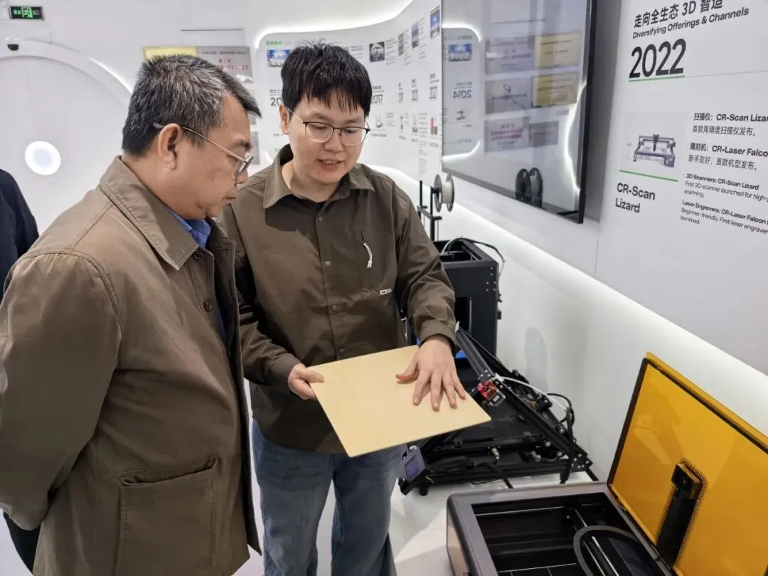 随后,考察团走进深圳市创想三维科技有限公司,详细了解3D打印机研发生产、市场应用及行业发展前景。针对数字媒体艺术专业学生创新创业和市场营销专业学生就业需求,校长助理王岩与企业负责人展开深入交流。她指出,学校高度重视学生创新创业能力与就业竞争力的双重培养,希望与企业共建实践基地,为学生提供项目孵化、岗位实践等全方位支持。企业负责人林滨洪表示,愿为学校学生开放实习就业岗位和创新创业孵化平台,助力学生实现职业发展与创业梦想。