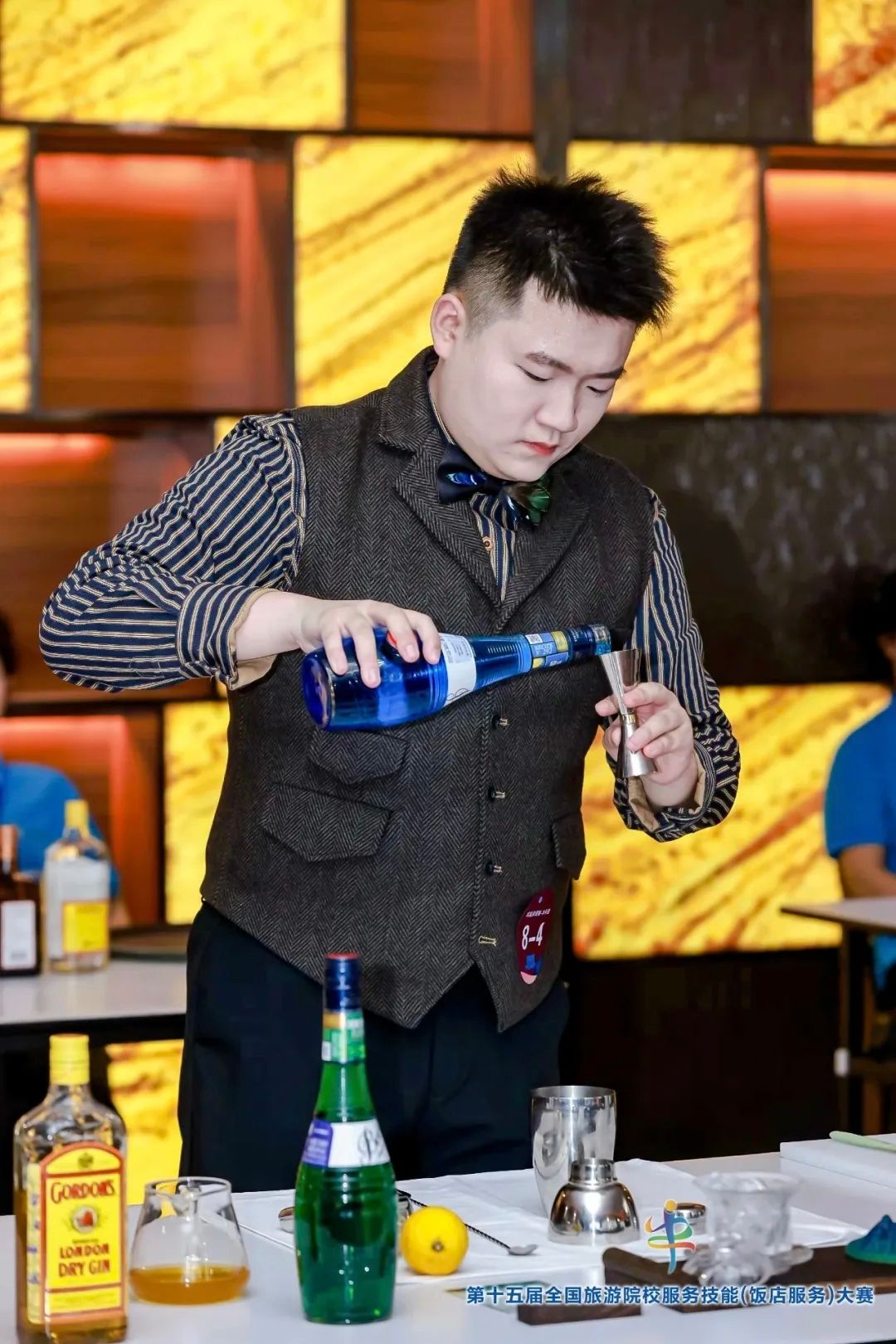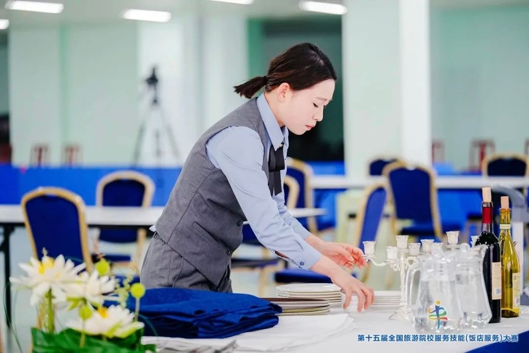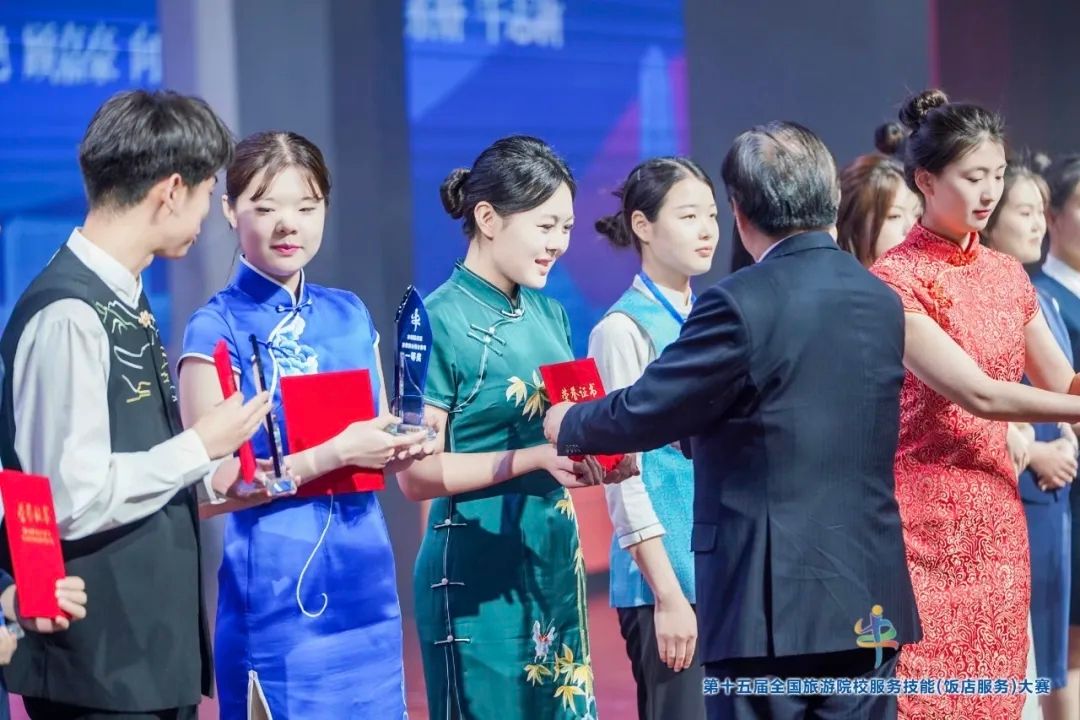 在第十五届全国旅游院校服务技能(饭店服务)大赛上,我校旅游管理系学生郑嘉同学凭借创新呈现的“本草轻食宴”在中餐宴会摆台赛项中力拔头筹,一举斩获一等奖。曹佳慧同学在西餐宴会摆台赛项中荣获三等奖,李明澳同学在鸡尾酒调制赛项中荣获三等奖,蔡长尧同学在客房服务赛项中荣获三等奖。
