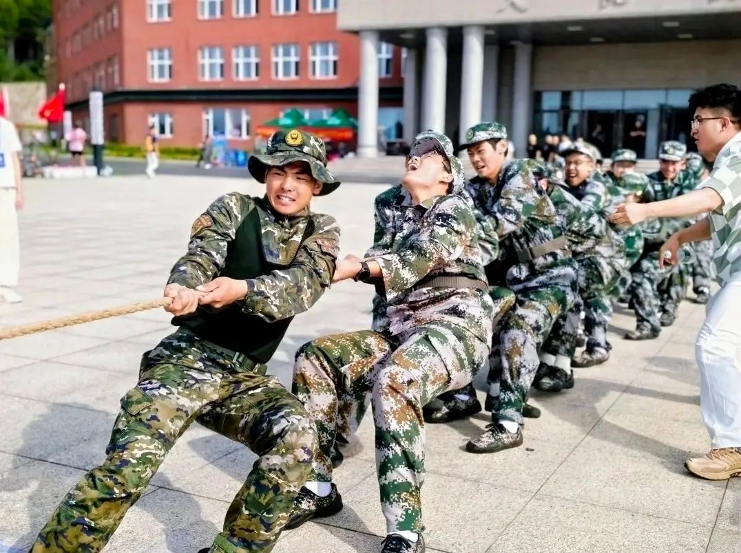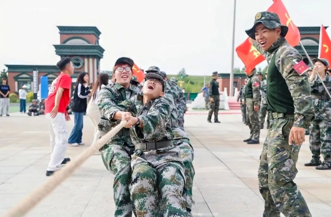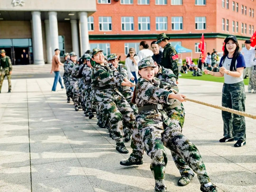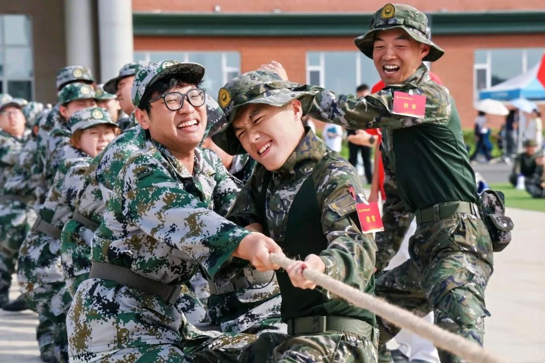 全部比赛落幕,一场教官与学生的友谊赛随即展开。双方笑着紧握绳索,口号声中满是欢乐,输赢已然不重要,此刻的并肩协作成了最温暖的收尾。