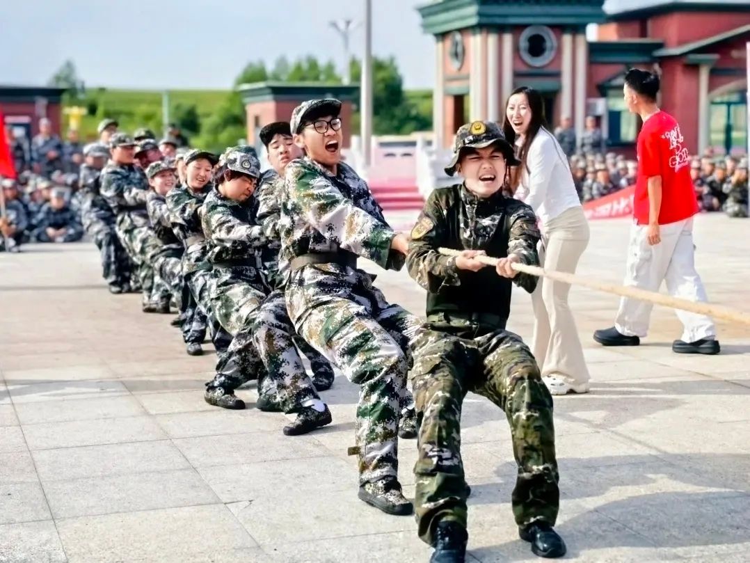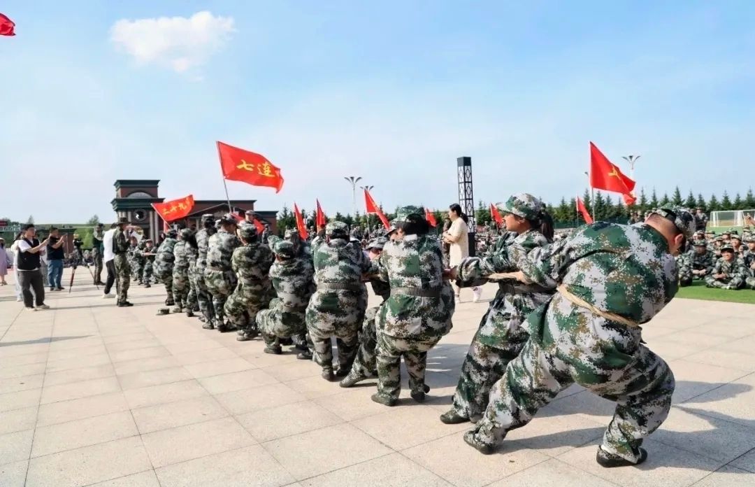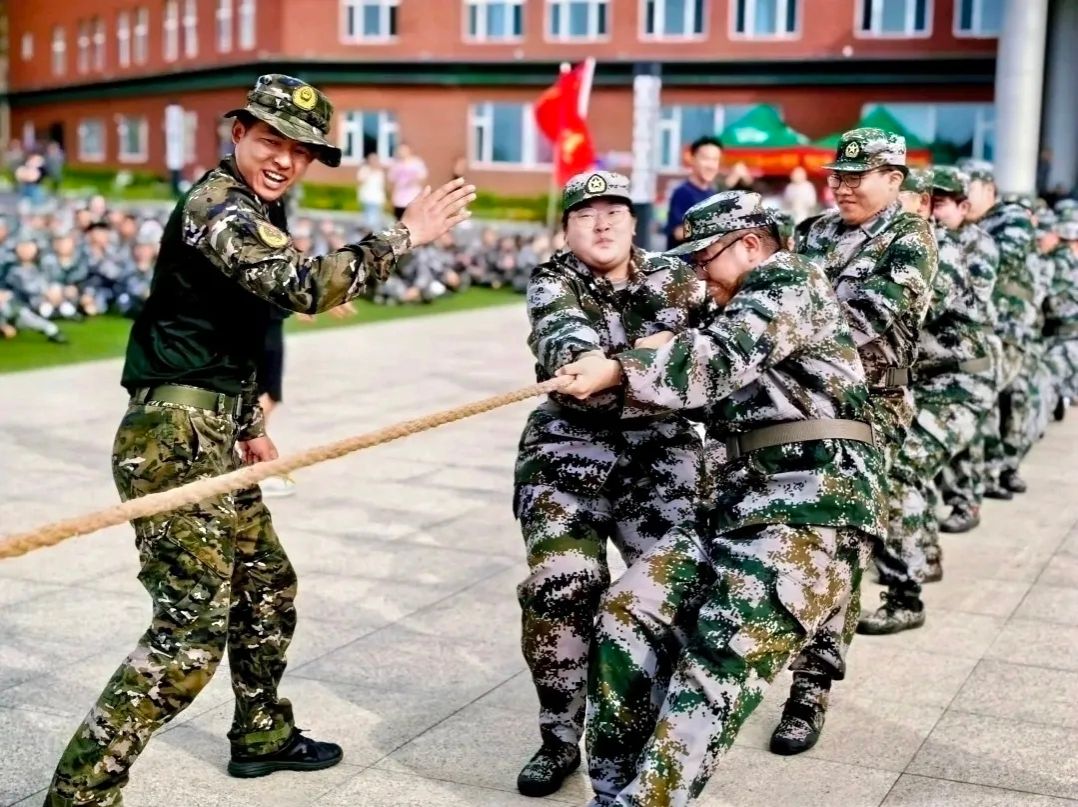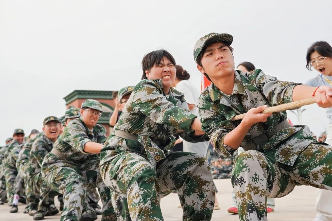 全部比赛落幕,一场教官与学生的友谊赛随即展开。双方笑着紧握绳索,口号声中满是欢乐,输赢已然不重要,此刻的并肩协作成了最温暖的收尾。