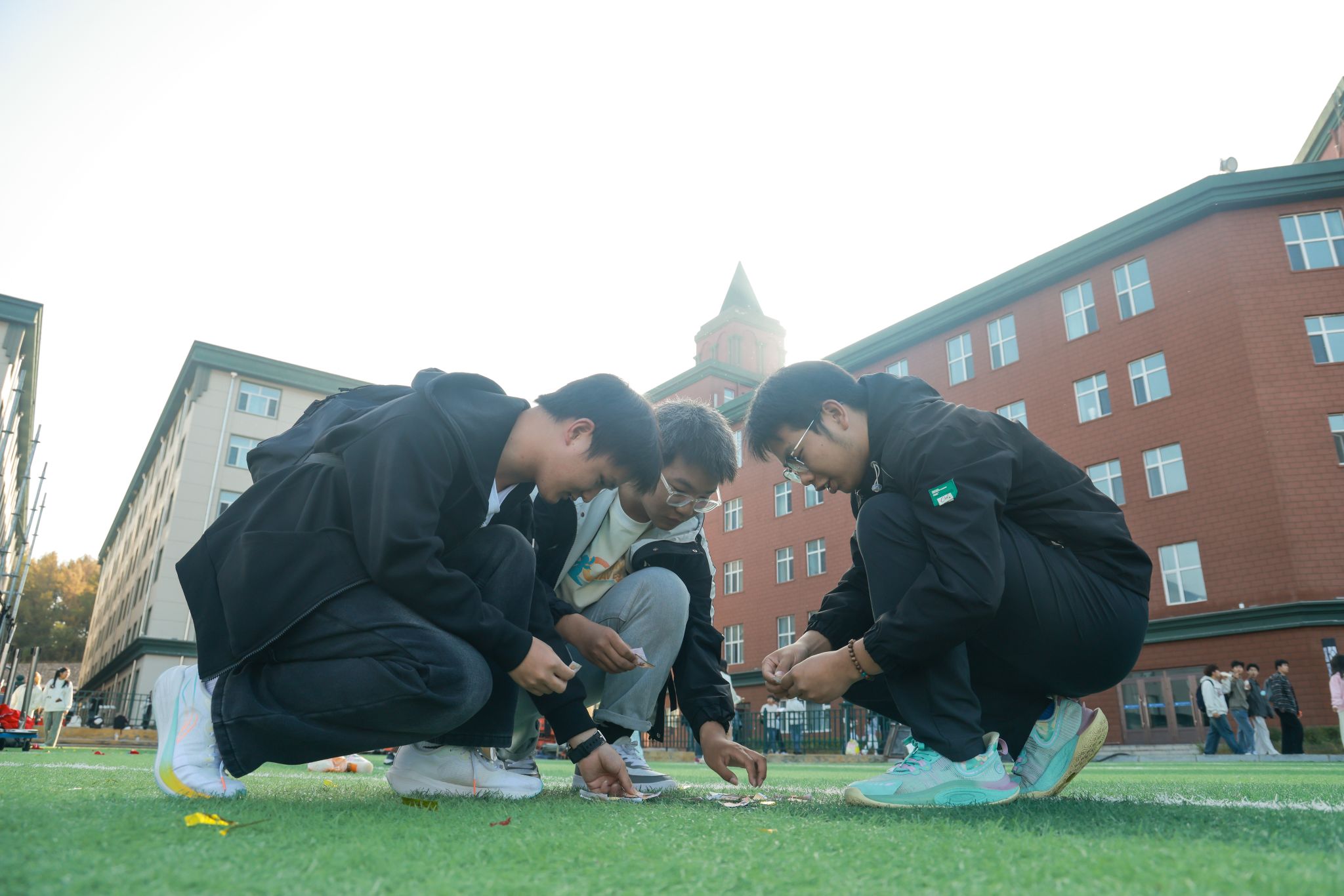 本次活动的重头戏——"趣味寻字"环节将现场气氛推向了高潮。校团委副书记韩佳凌公布校园各处藏有印有"中""秋""国""庆"字样的纸条,我校学生纷纷前往探寻。