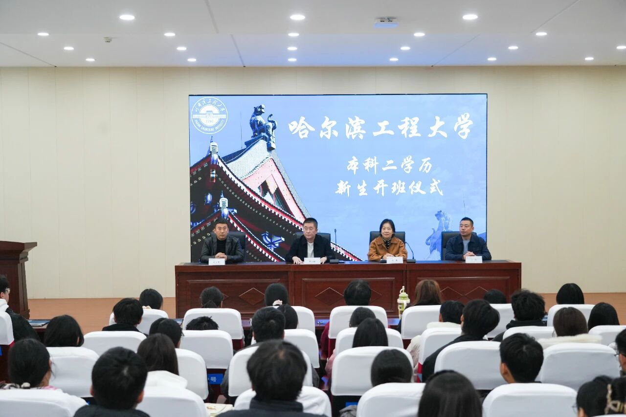 近日,我校与哈尔滨工程大学、东北农业大学在群观楼314报告厅,联合举行了2025级本科二学历新生开班仪式。哈尔滨工程大学继续教育学院自考办主任叶琳、东北农业大学继续教育学院院长助理张宏伟及我校继续教育学院院长史大威出席仪式并致辞,三校相关部门负责人与全体新生共同参加。