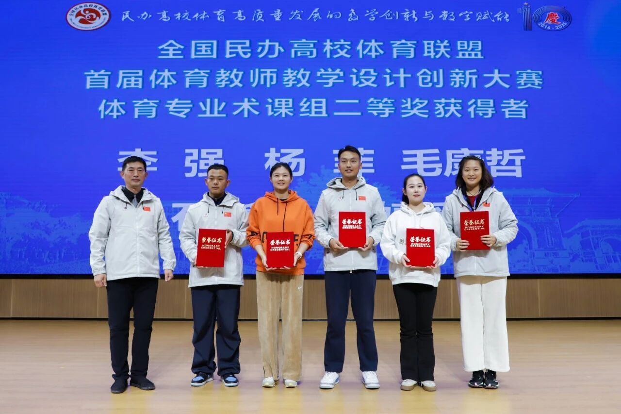 在11月22日至23日于河南郑州举办的全国民办高校体育联盟首届体育教师教学设计创新大赛中,我校体育教研部杨菲、张碧桐两位教师,凭借其创新的教学设计与过硬的专业能力,分获全国二等奖与三等奖,充分展示了我校教师队伍的教学风采与扎实功底。