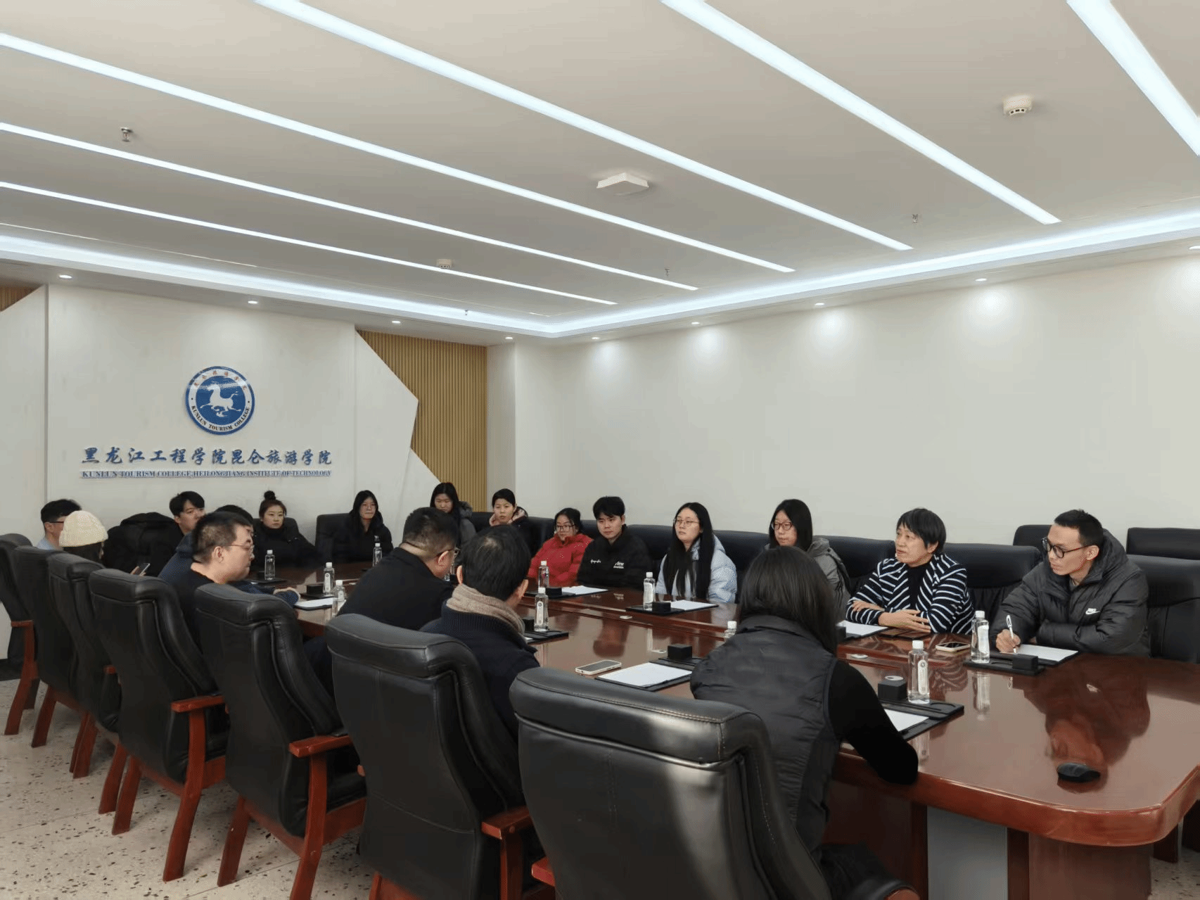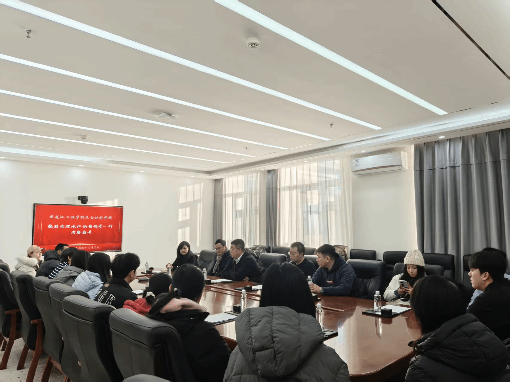 12月16日,黑龙江供销商贸流通运营有限公司总经理赵香宇、杭州我思品牌管理有限公司总经理徐晓枫一行9人来到我校,与工商管理系主任闫秀荣、教学副主任高兴苹及11名师生代表进行座谈。双方围绕直播实训项目,就教学合作、学生实践与就业等议题展开交流。