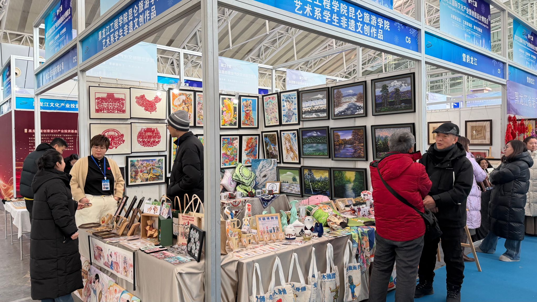 12月26日至29日,第十七届黑龙江国际文化产业暨创意设计博览会在哈尔滨国际会展中心举行。本届博览会以“文旅新场景·消费新业态·数字新赋能”为主题,汇聚国内外众多文化机构与企业。我校艺术系师生作品亮相该展会,学生创作的系列文旅产品因设计新颖、贴近市场,在展会中受到游客与商家广泛好评,并成功与相关单位达成初步合作意向。
