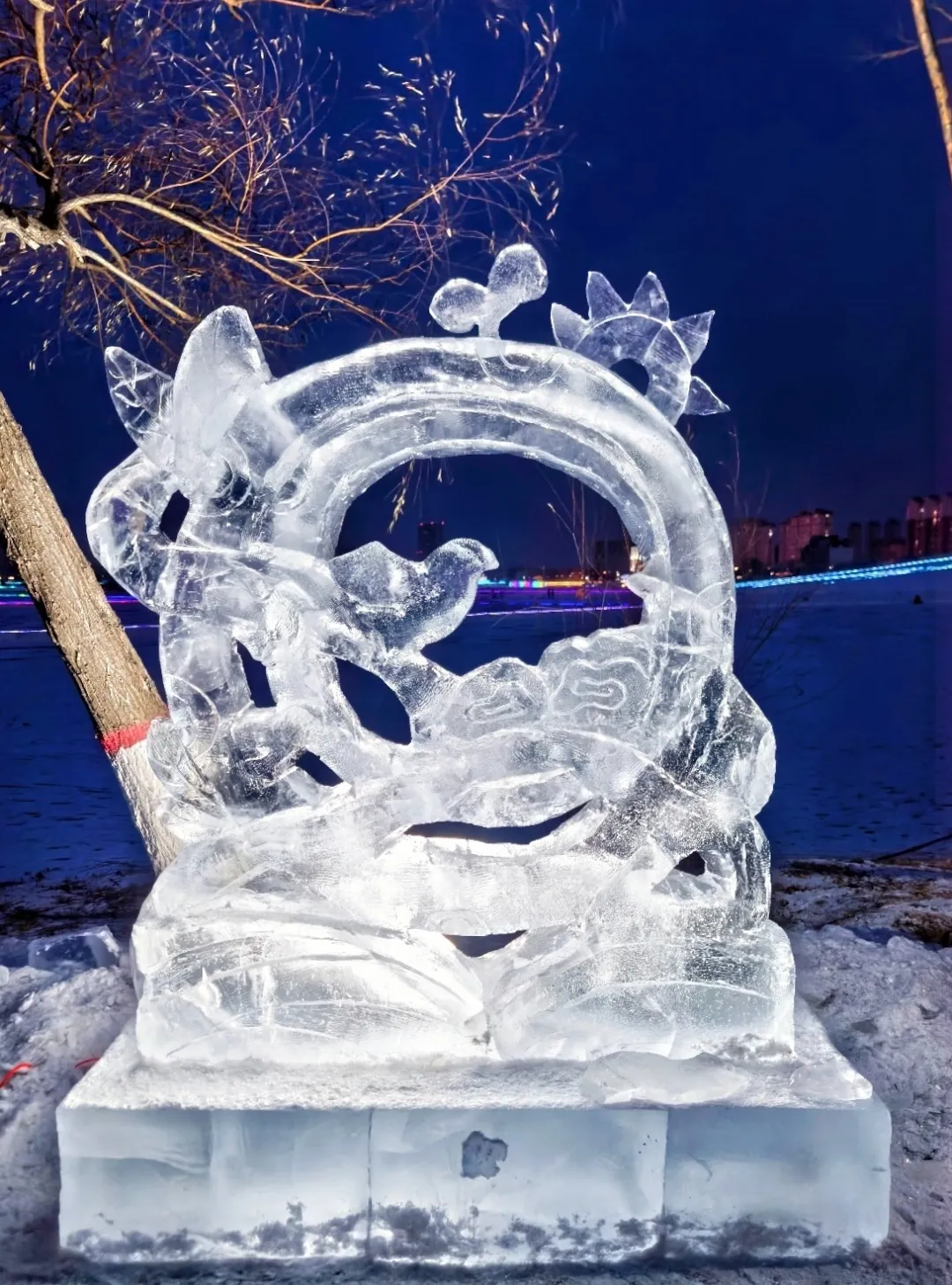 然而,梦想照进现实的过程充满挑战。如何让设计适应冰材“脆”的特性,是每支队伍必须解决的难题。“画稿和真正下刀,完全是两回事,”刘庆祥感慨,“结构太复杂不行,线条太精细易断。我们得不断思考,如何用冰的语言,说出我们想说的话。”