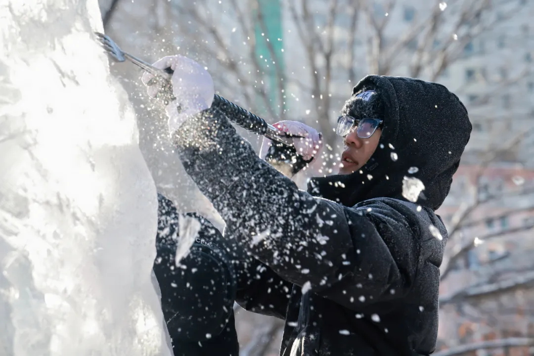 这份长达十年的坚持,塑造了独特的传承氛围。一届届学生在这里接过刻刀,也接过了对这份“冷艺术”的“热爱情”。许多同学在第一次接触后,便像田庆瑾一样选择再次挑战。“累,但特别充实开心,”这几乎是所有参赛者的共鸣。那份开心,源于创意落地、团队共进的成就感,更源于在极致寒冷中,内心升腾起的那份炽热的专注。